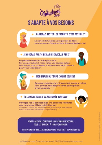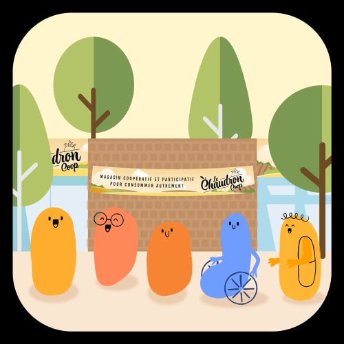 Réalisation du logo, de la charte graphique, d'une bannière extérieure et d'une vidéo animée explicative pour le magasin coopératif et participatif Le Chaudron Coop situé au Chesnay-Rocquencourt (78)