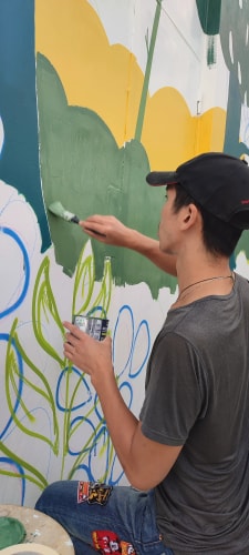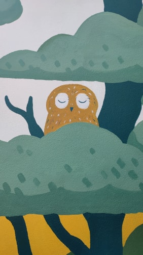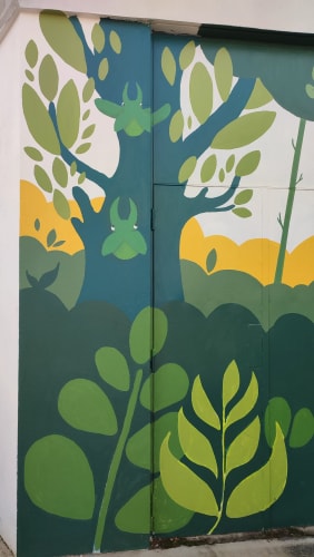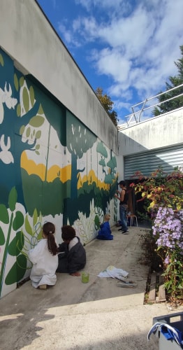 Fresco imaginado, dibujado y realizado, con la valiosa ayuda de Rodger Liukane para el patio de la tienda cooperativa y participativa "Le Chaudon Coop" en Chesnay-Rocquencourt (78)